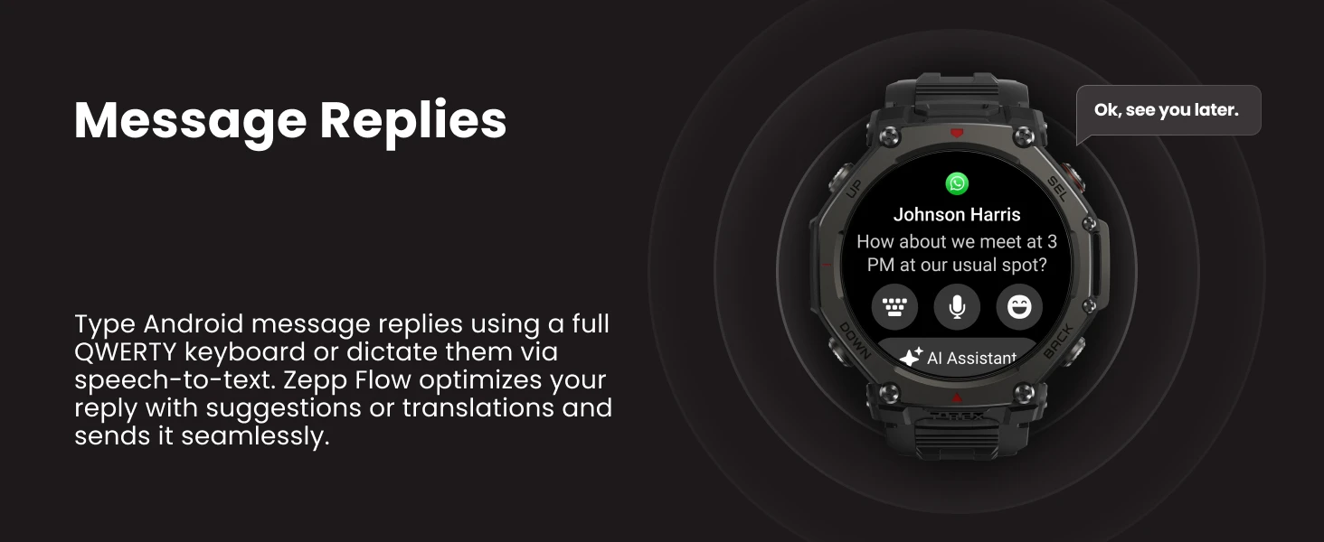 Stay Connected Without Stopping: Take Bluetooth calls from the trail, use Zepp Flow to reply to instant messages hands-free (connection to Android phone required), listen to training notifications, and more with the built-in speaker and mic.