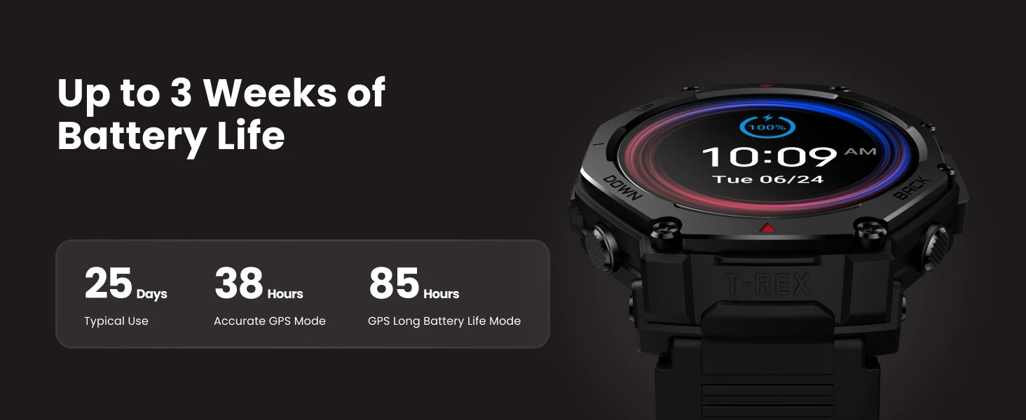 Up to 3 Weeks of Battery Life: Built to keep up with you, this watch delivers exceptional battery life - up to 25 days - so you can focus on the journey, not the charger. Whether on multi-day treks or remote missions, it stays powered when you need it.