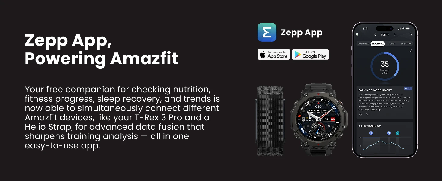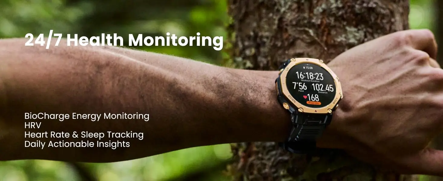 Every Beat Counts: The T-Rex 3 Pro’s BioTracker sensor delivers precise heart-rate tracking. Pair with the Helio Strap for a 24/7 training and recovery system, ensuring every hike, race, and workout is backed by the most reliable data possible.