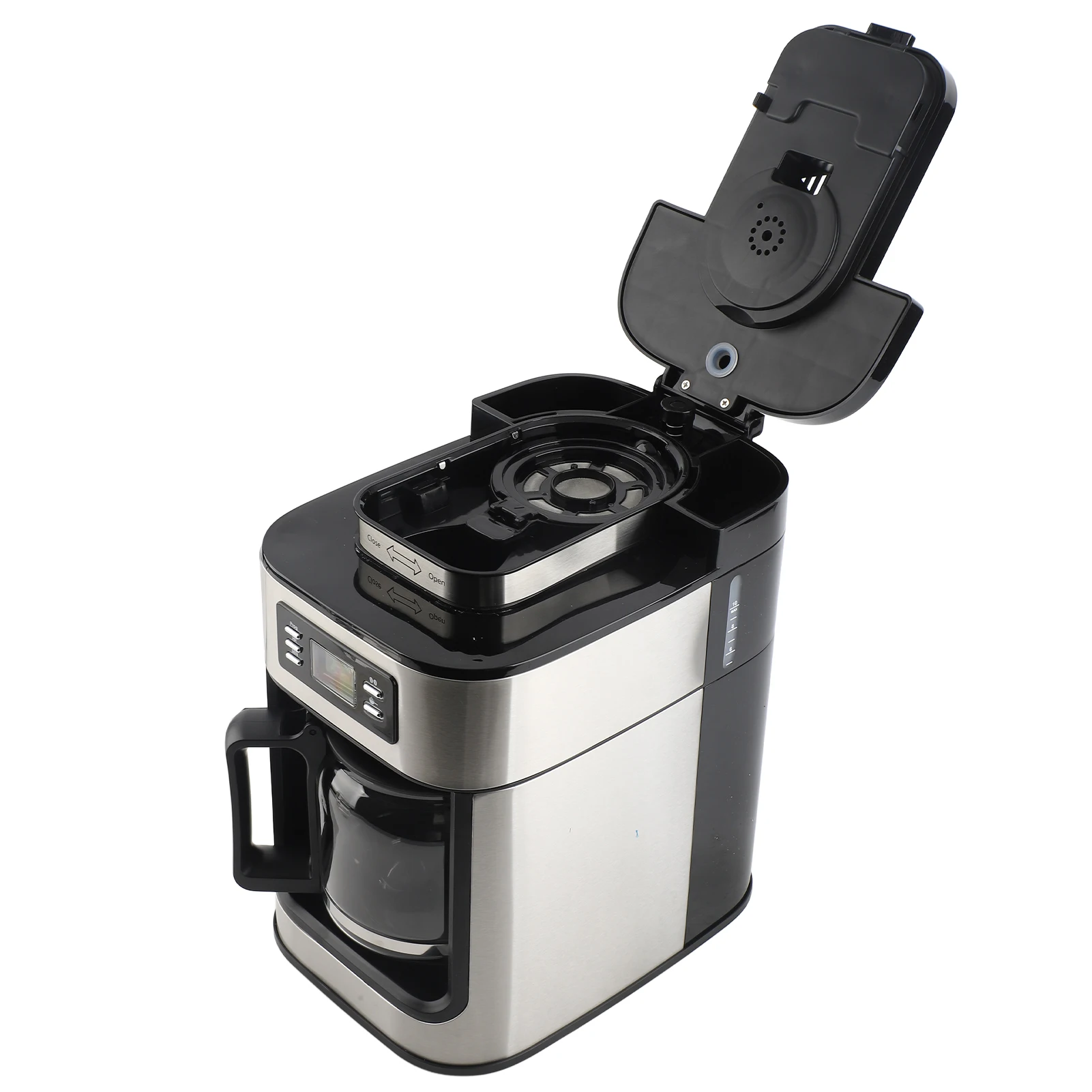 5. Easy to Operate: With its user-friendly design, this drip coffee maker is easy to operate. You can choose between coffee beans or coffee powder to make drip coffee, depending on your personal preference. The coffee machine comes with a burr grinder, allowing you to brew a fresh cup of coffee using coffee beans. The burr grinder collects and grinds the coffee beans, preserving their full flavor, and the resulting coffee powder is then directly deposited onto the filter.