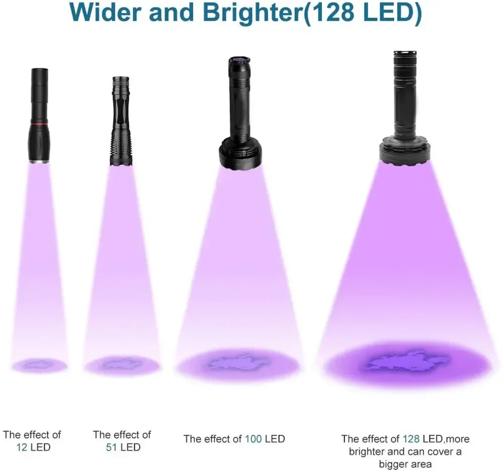 128LED 395nm UV Flashlight High Power Ultraviolet Torch Money Ore Pet Stains Invisible ink Scorpion Marker Fluorescent light