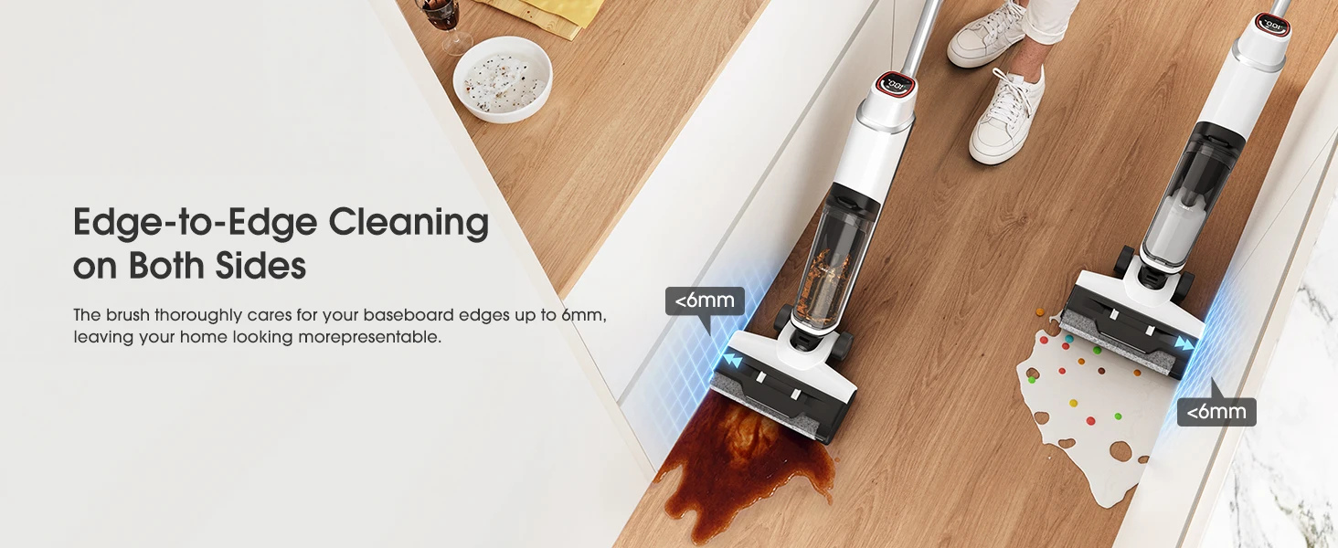Cleans within 6mm of baseboard edges on both sides, eliminating dust in hard - to - reach corners. Perfect for kitchens with spills near cabinets or living rooms with dirt along walls—leaves your home looking spotless.