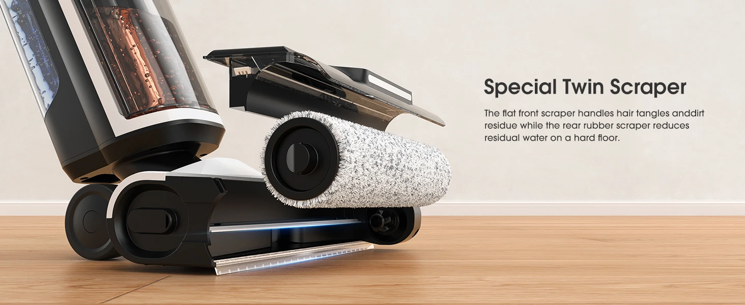 The flat front scraper tackles pet hair tangles, and the rear rubber scraper reduces water residue on hard floors. A must - have for pet owners—keeps floors clean and dry after cleaning up fur and muddy paw prints.