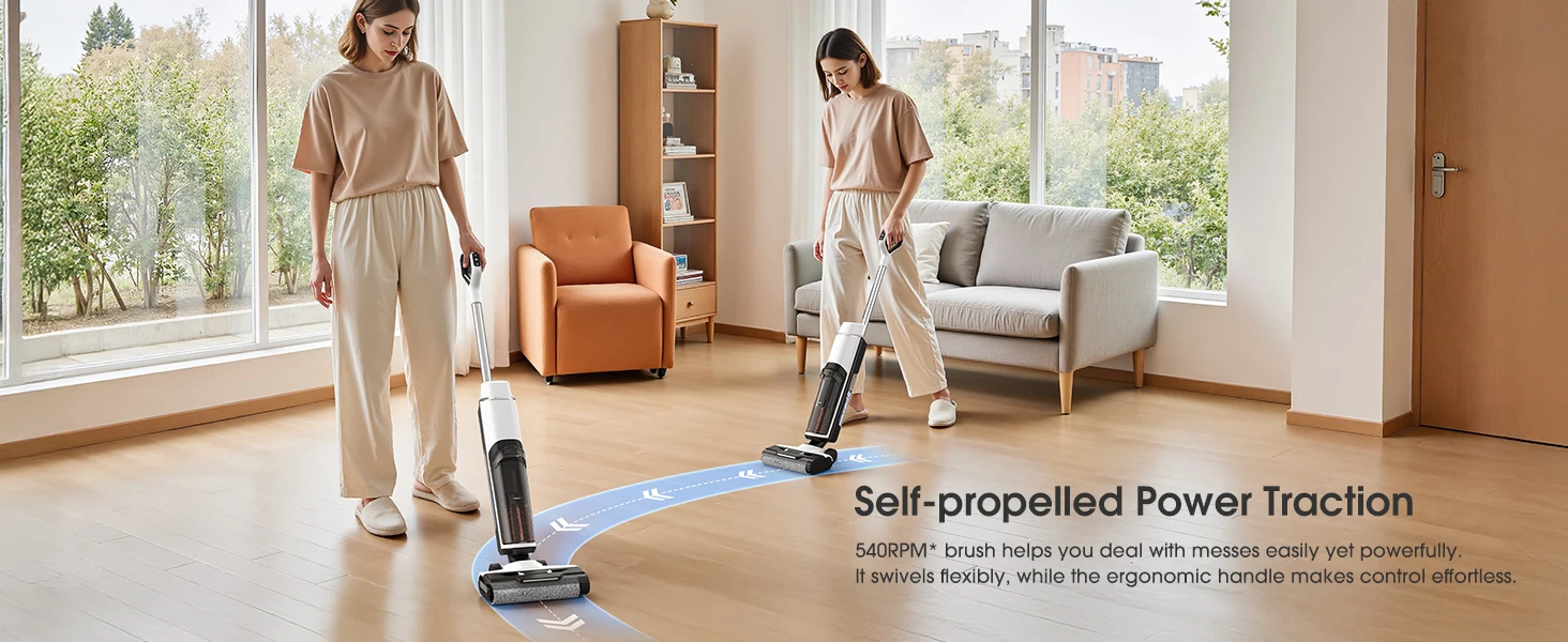 Features a 540RPM brush and ergonomic handle for easy control. Maneuvers smoothly around furniture in living rooms or bedrooms—effortlessly deal with messes, making cleaning large spaces a breeze.