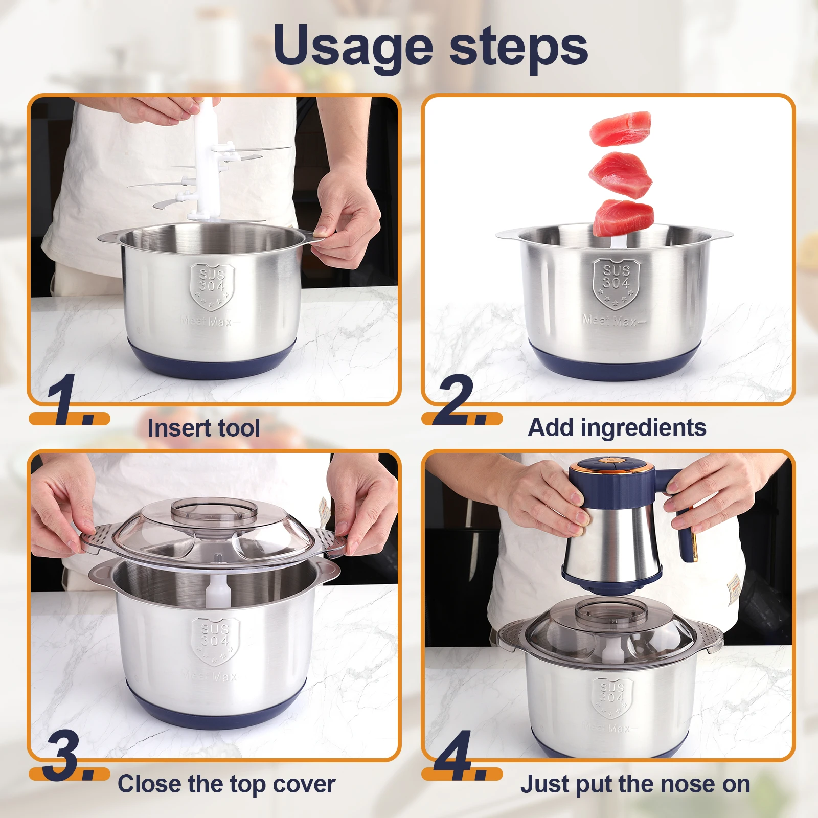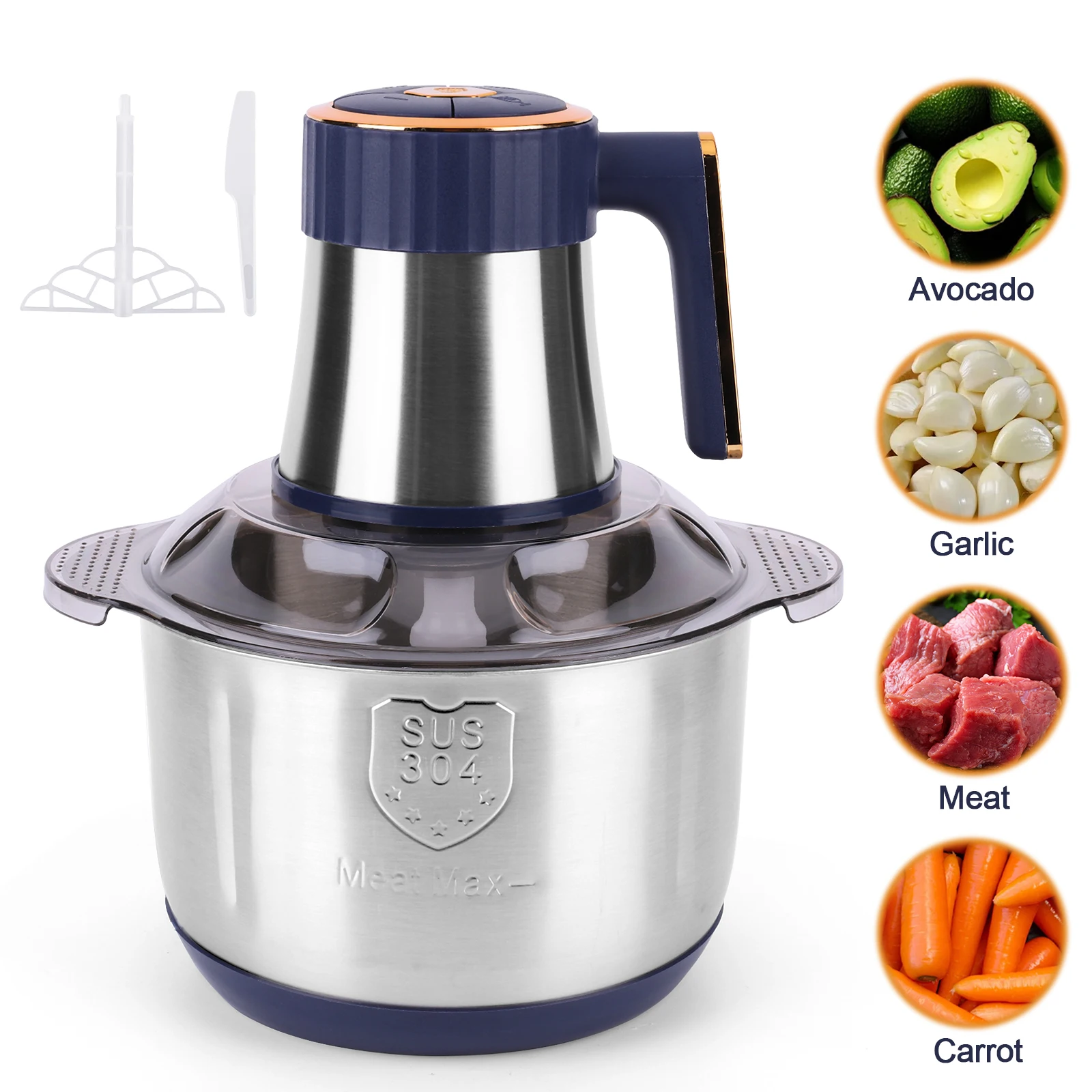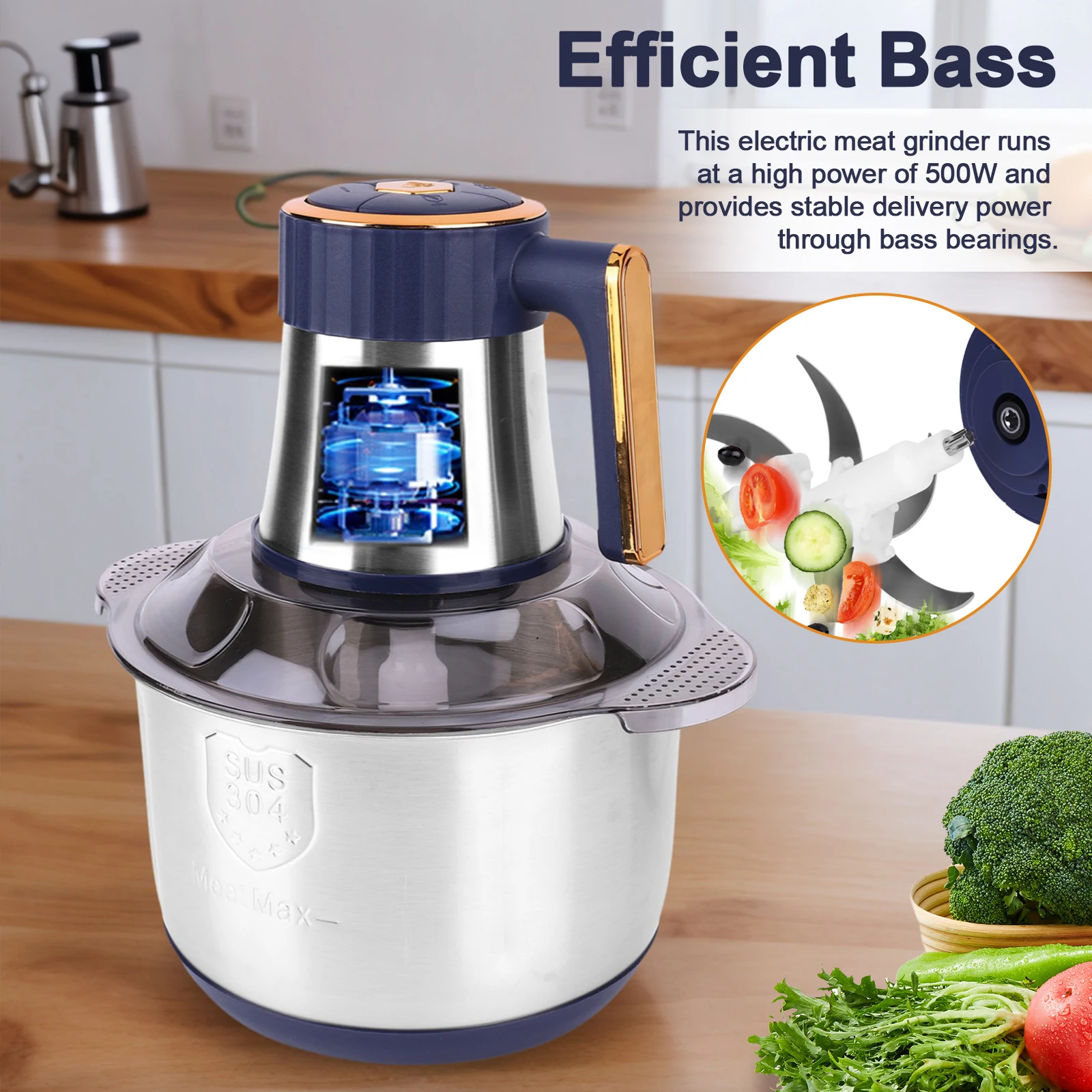 2.Efficient Food Vegetable Processor: The meat grinder mincer operates at a powerful 500W, with a low-noise bearing providing stable power transmission. It finely mixes ingredients and prepares them quickly.