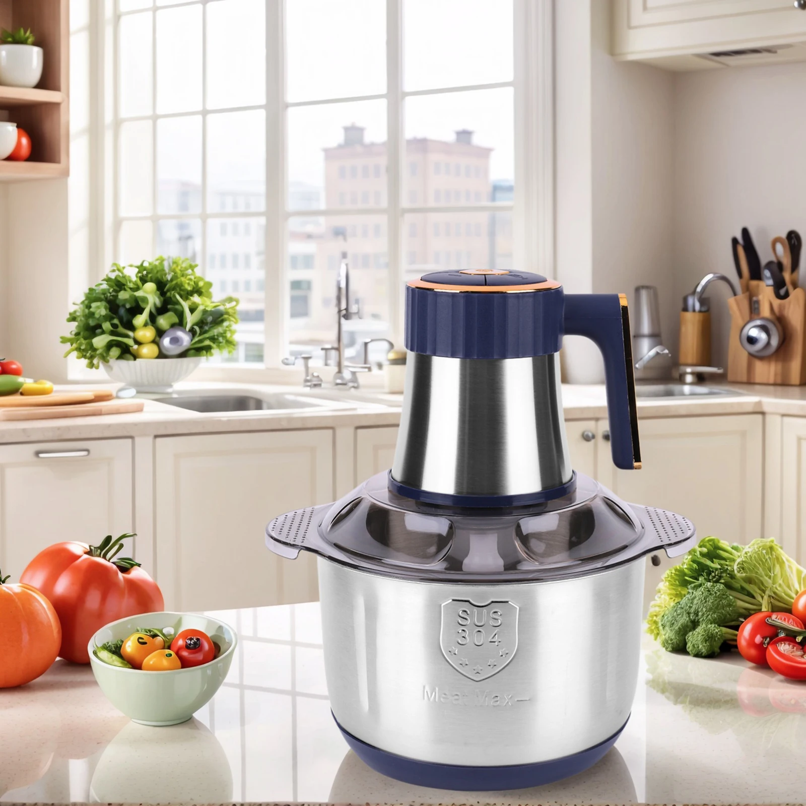 3.5L Electric Chopper: Featuring a large 5L (20 cups) stainless steel bowl, this electric chopper and shredder meets the need for processing large quantities of food at once.