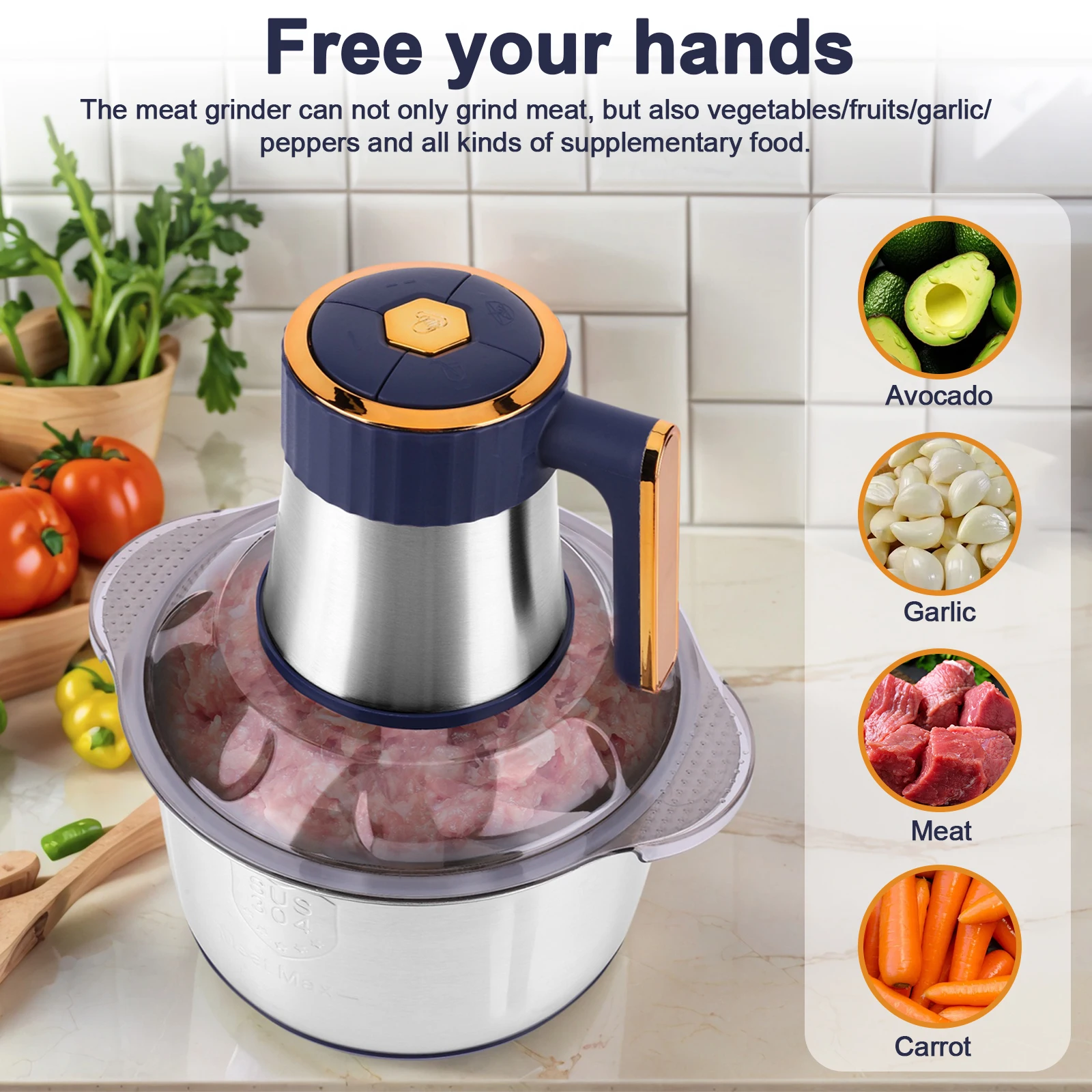 1.Versatile Electric Meat Grinder: This machine is not just an electric meat grinder, it also chops vegetables, fruits, garlic, and chili for all kinds of baby foods. The egg beating and dough kneading functions allow you to make a variety of noodles.