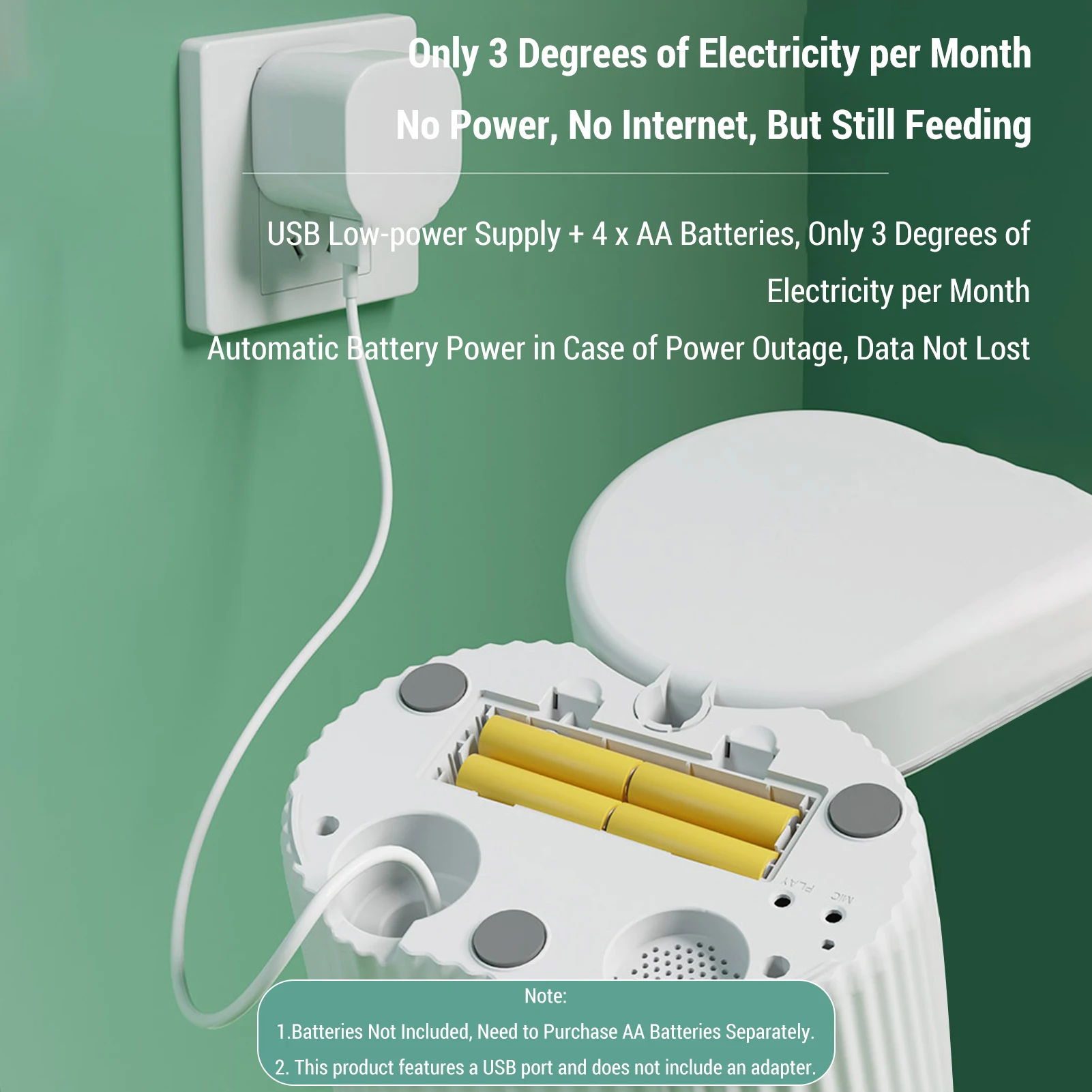 Power Outage Memory: Feeding schedule resumes after power loss.