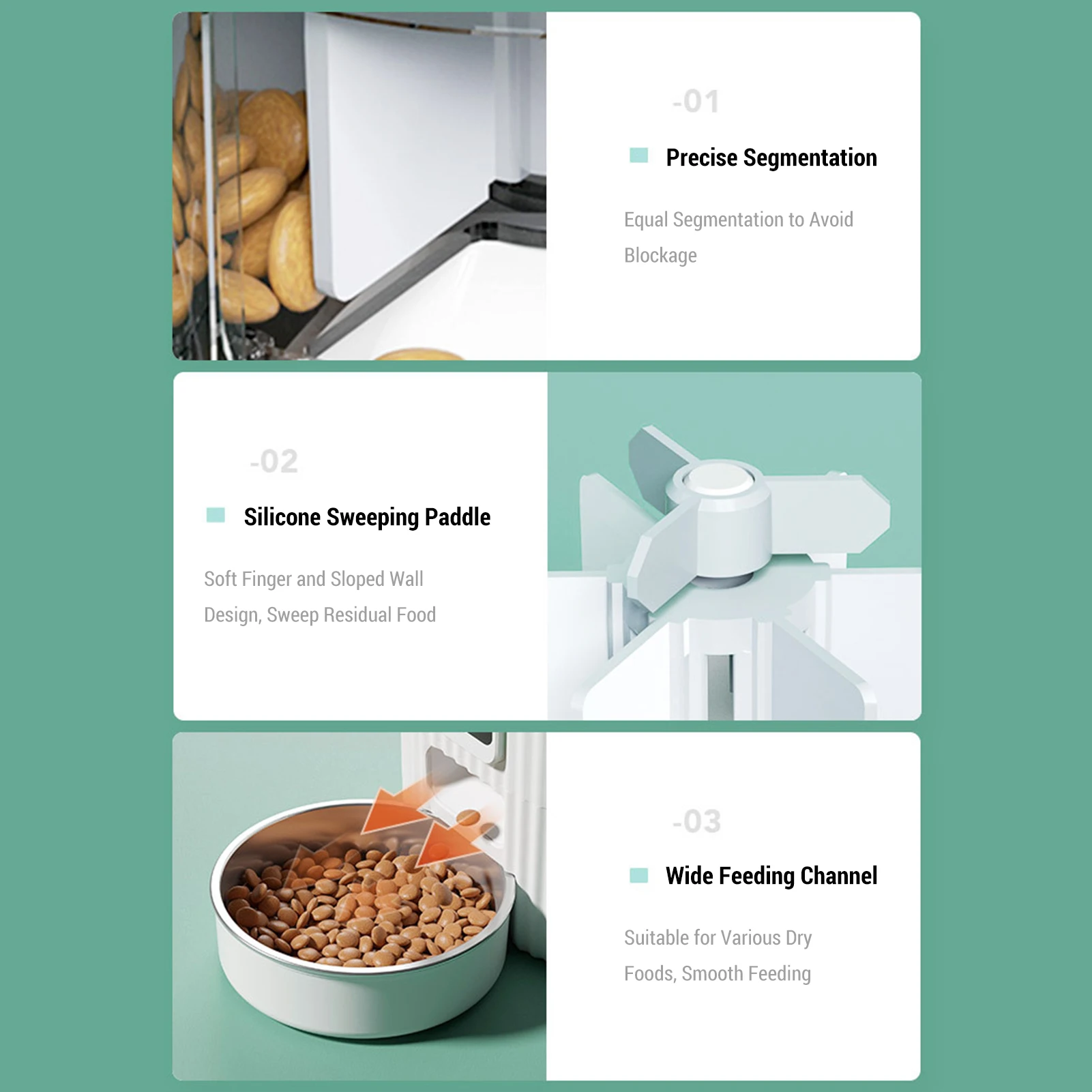 Food Compatibility: Suitable for dry pet food with particle size up to 10mm.