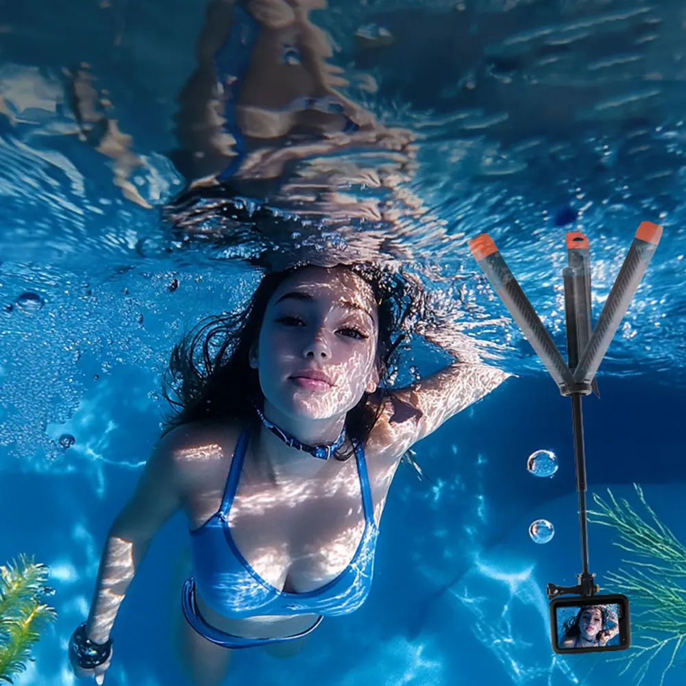 Features: 1.Stable in Water: The three-pod independent design liberates hands, enabling submerged photography. Featuring a floating selfie stick tripod, you can capture underwater shots effortlessly. 2.Extendable Aluminium Alloy Rod: The aluminium alloy rod extends to 57 cm, allowing use as a hand grip or a floating selfie stick tripod, making it versatile for different shooting angles and distances. 3.Stability and Portability: Combining the extendable tripod stand with a buoyancy rod, this set ensures stability and ease of transport in any aquatic environment. 4.Waterproof Depth Up to 30 Meters: Withstand up to 30 meters of water pressure, this exceptional camera stand helps you explore the wonders of the underwater world securely. 5.Broad Compatibility: Compatible with most action cameras, this device promises easy integration with your equipment collection. Specification: Origin: Mainland China Size: Adjustable height 235-570mm 9.25-22.44inch Material: Plastic + Aluminum Alloy Note: ![]() 1 x Floating Selfie Stick Tripod
