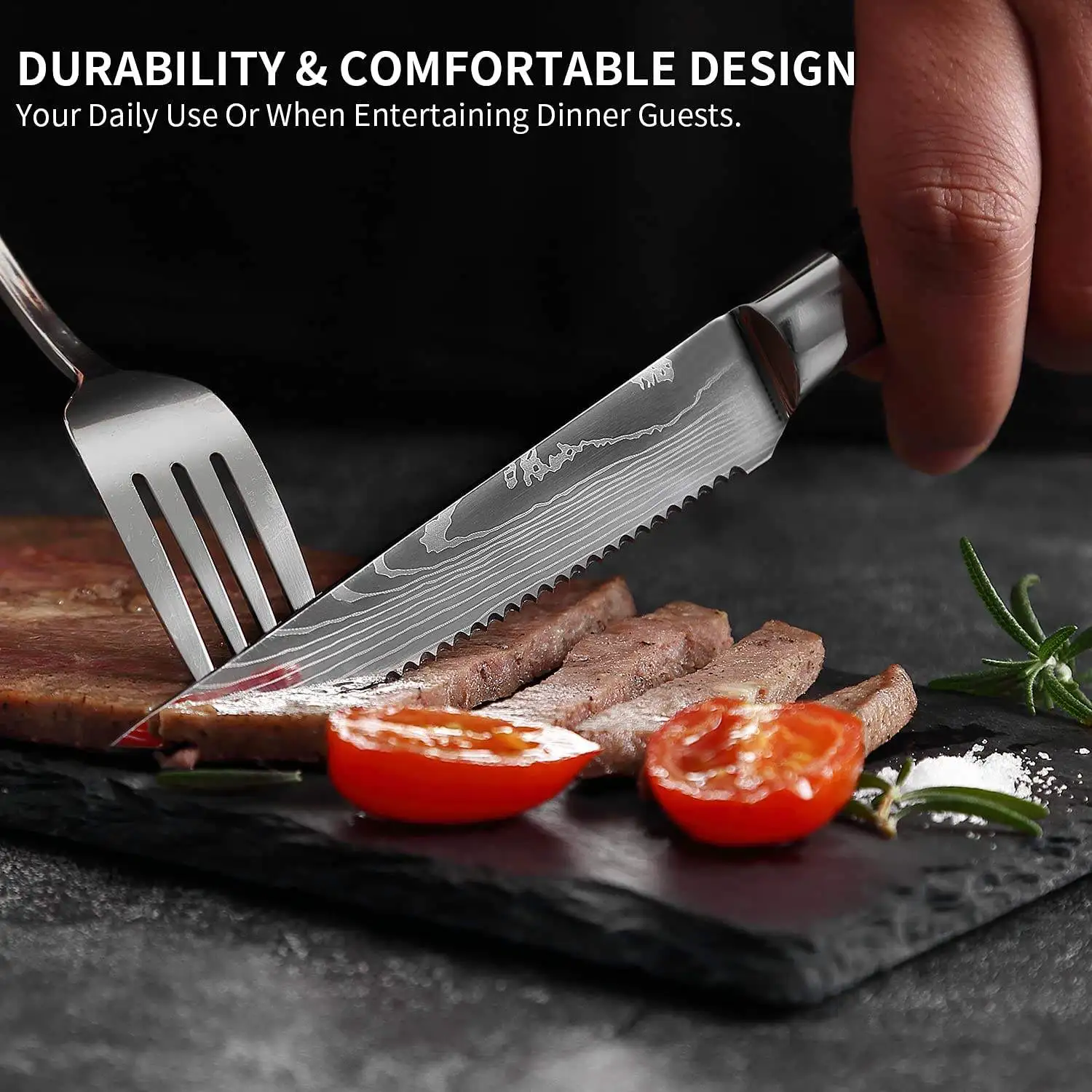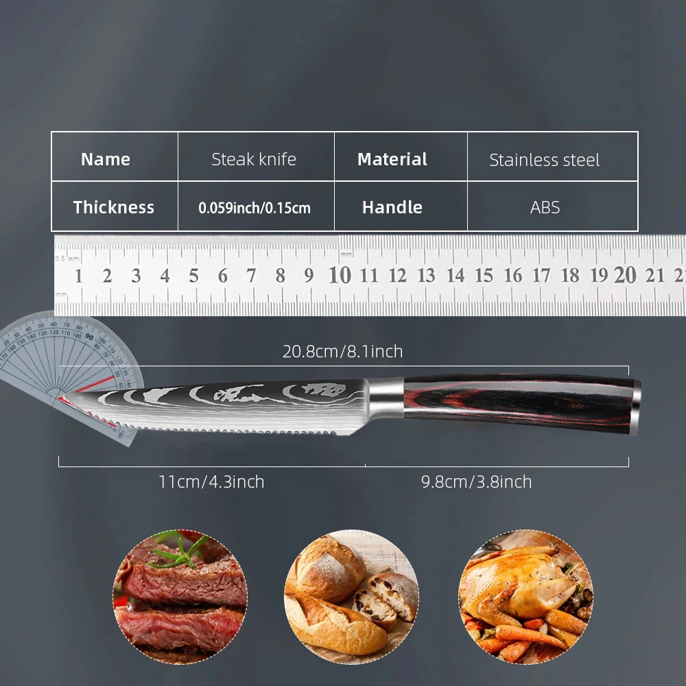 High-hardness 4.5-inch Laser-Patterned Damascus Steak Knife
