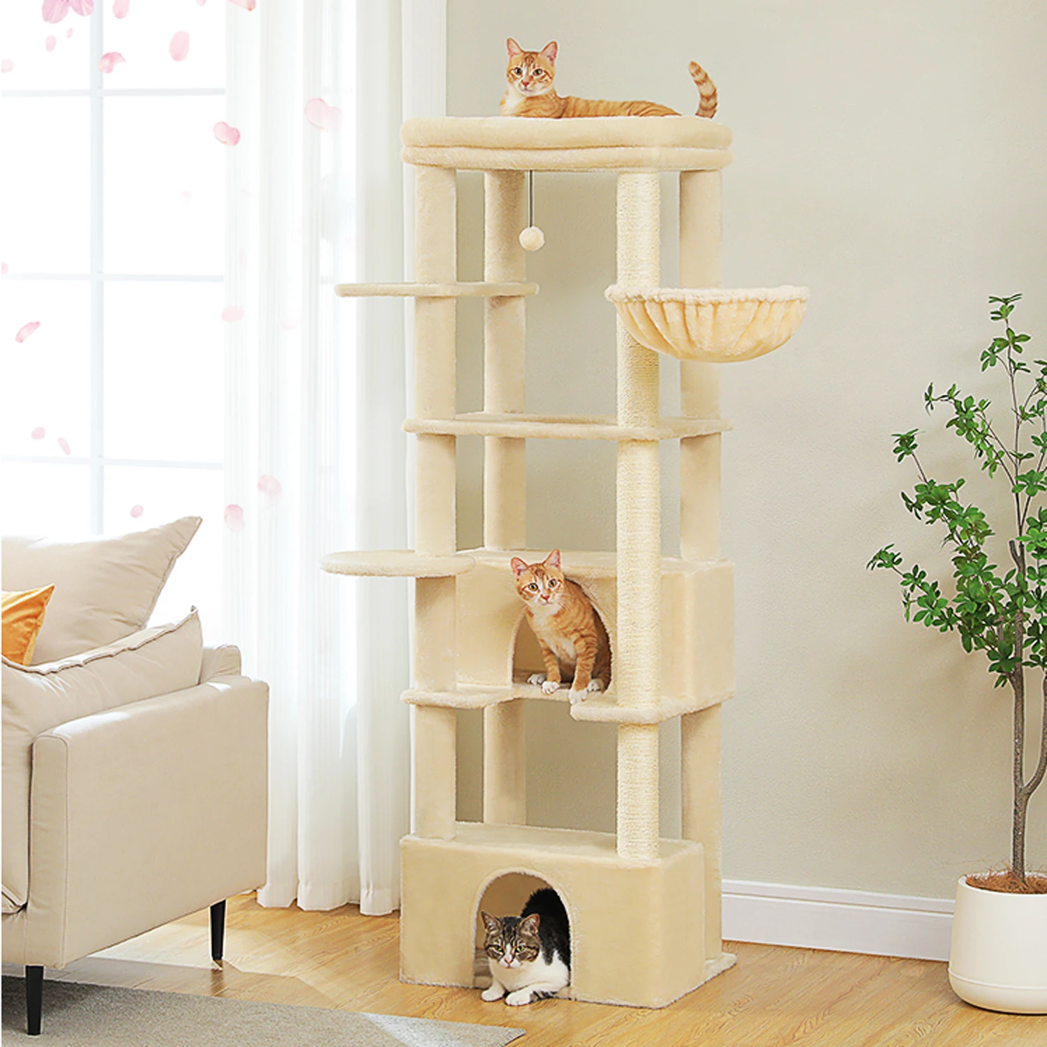 Large Cat Tree with Scratching Posts Cozy Hammock Spacious Top Perch Tall Cat Tower