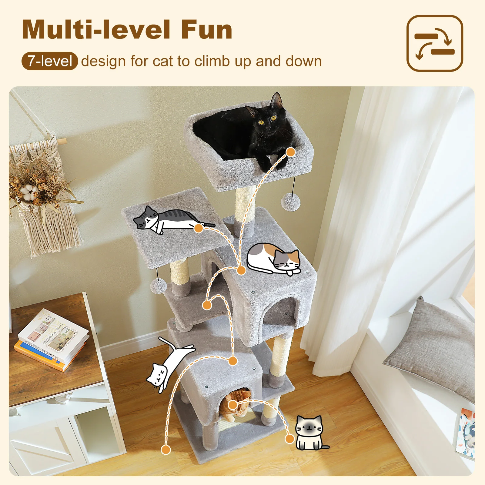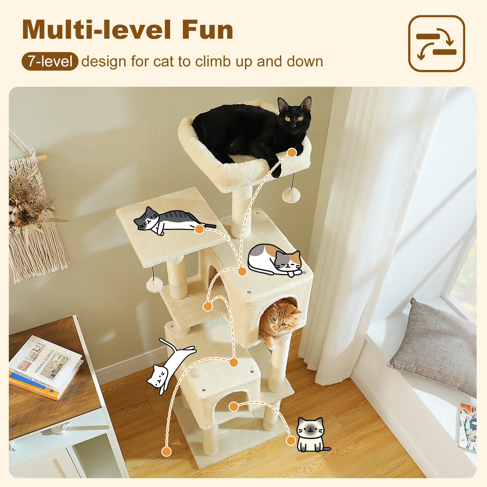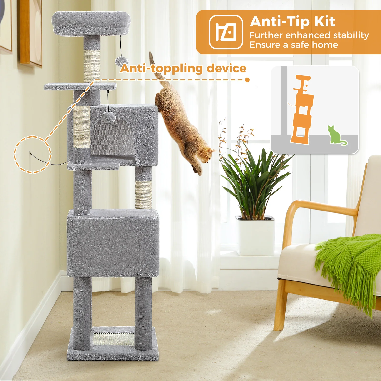 Multi-Level Cat Tree for Indoor Large Cat Tower with 2 Spacious Condos Scratching Posts Scratching Pad