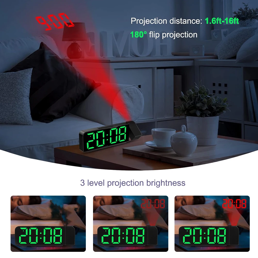 3. Versatile Functionality: This LED digital alarm clock offers more than just timekeeping; it includes an alarm, date, temperature, and time projection. Its multifunctional design caters to diverse needs, providing a comprehensive solution for various daily requirements.