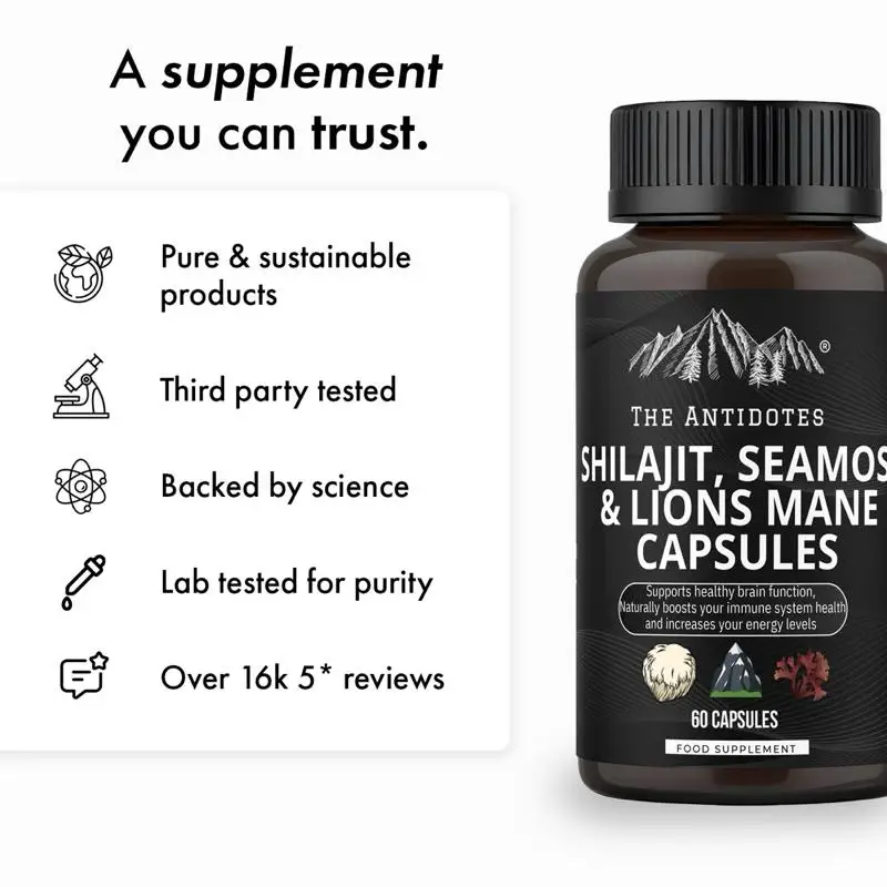 Shilajit, Seamoss, and Lion's Mane Capsules