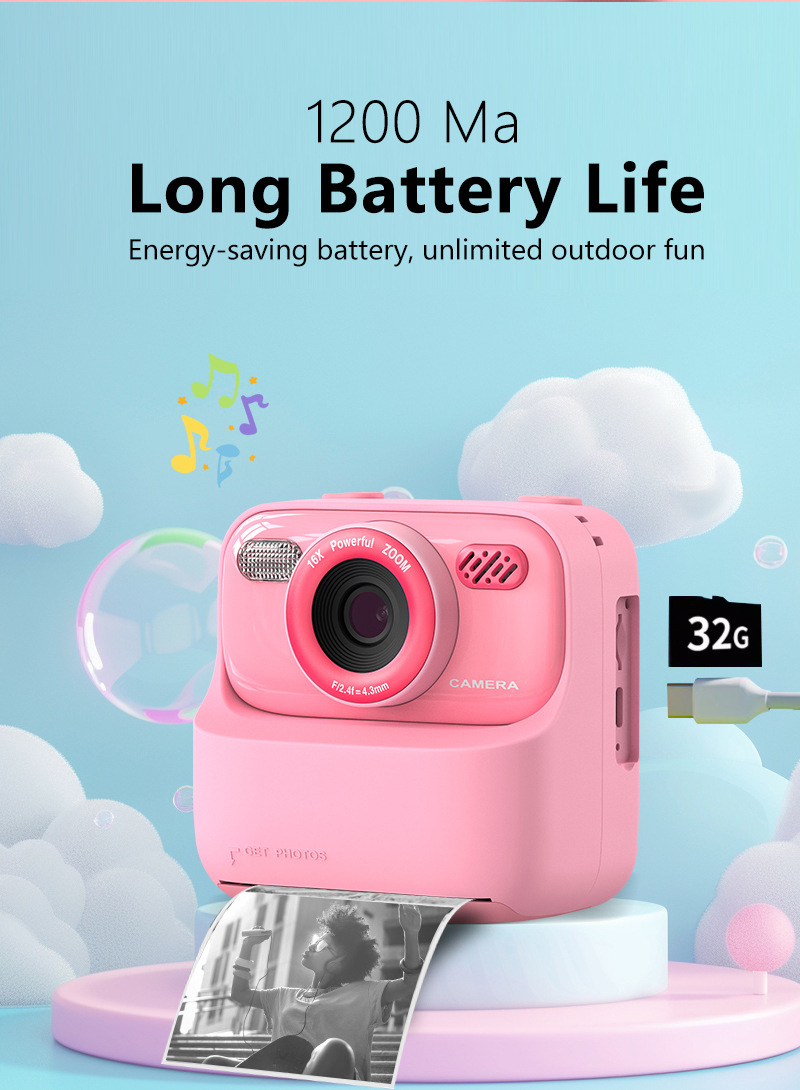 Portable & Powerful Battery Life: Our kids instant print camera adopts Type-C charging technology thus saving time with faster charge speed. Continuously taking photos for 3-4 hours after fully charged. Come with a 32GB SD card(is already installed in the camera) to store thousands of photos. Also, the camera for kids also specially designed a durable lanyard for portability, easy to carry and move.