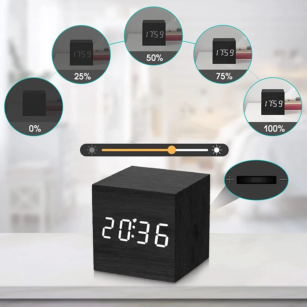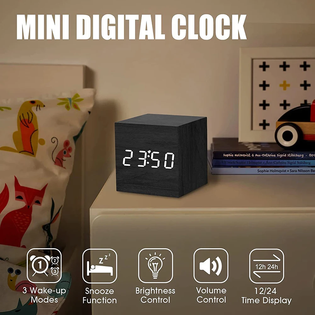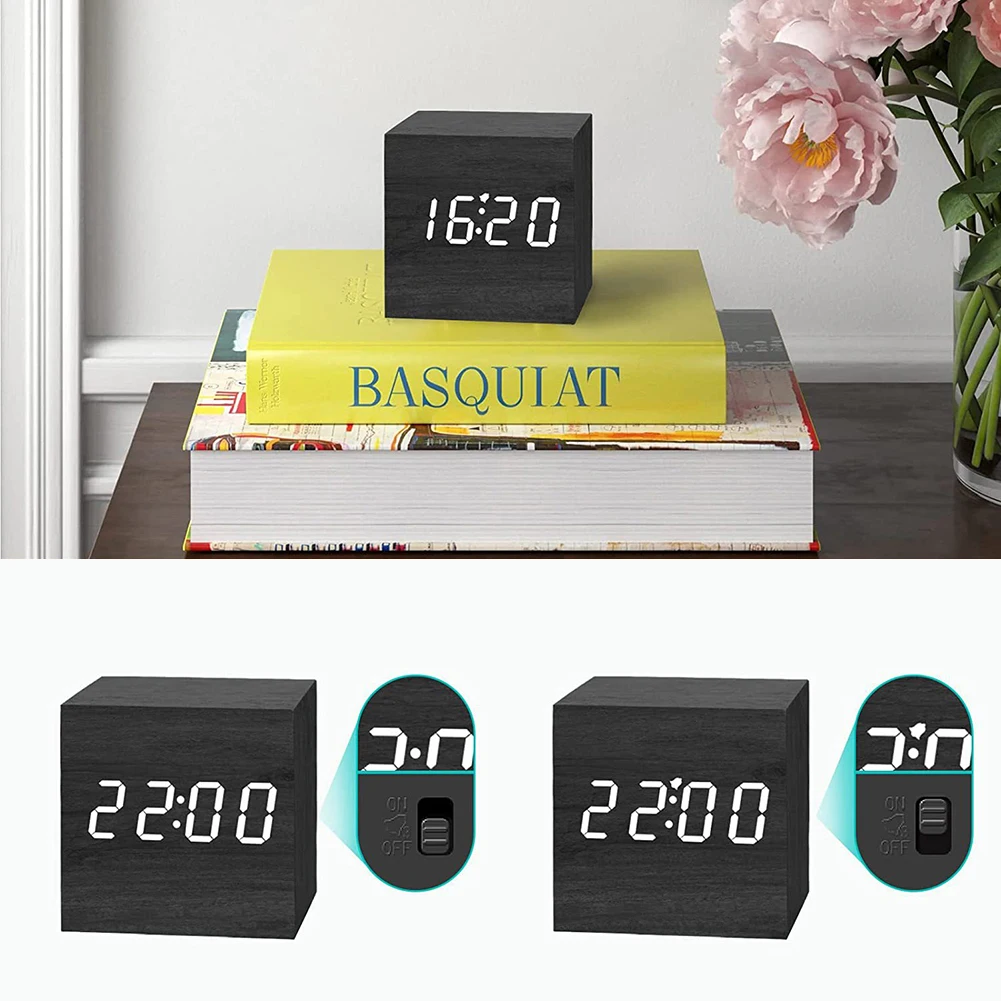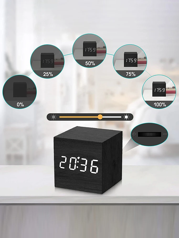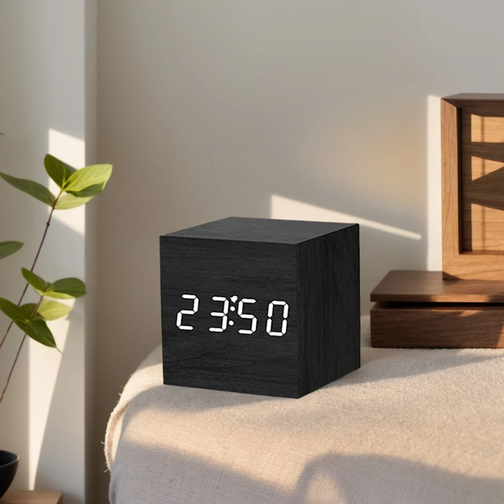 3. LED Illumination: Enjoy a clean, contemporary vibe as the LED display subtly shines through the wooden facade of this LED bedside clock, providing a warm glow and clear visibility without compromising on the aesthetic.